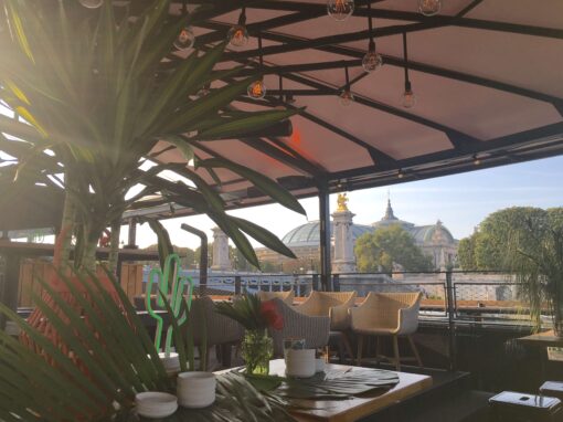 Le Flow est une péniche événementielle emblématique amarrée au pied du pont Alexandre III, offrant un cadre atypique avec terrasse, rooftop et vue imprenable sur la Seine et les plus beaux monuments de Paris.